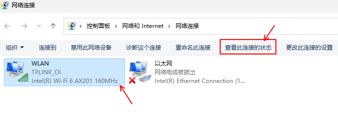 找到你的電腦鏈接的wifi適配器雙擊,或者選中后點擊圖上指出的“查看此鏈接狀態”