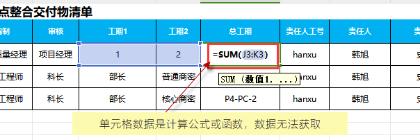 單元個里面的數據,只能是字符串或數值。若是計算公式或函數 ,將無法獲取